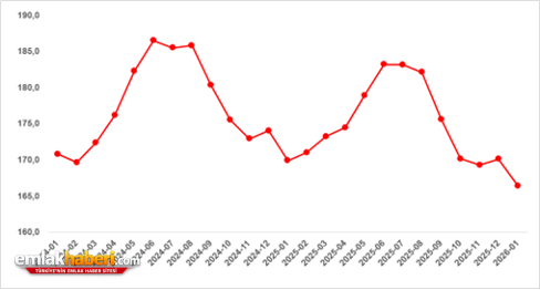 Türkiye genelindeki reel kira endeksindeki ağustos ayından beri devam eden düşüş, aralık ayında yön değiştirerek yükselişe geçmişti. Ancak ocak ayında düşüş eğilimi yeniden gözlemlendi. Buna göre reel kira fiyat endeksi 166,4’e düşerken bir önceki yılın aynı ayına kıyasla reel kira endeksindeki değişim yüzde -2,1 oldu.