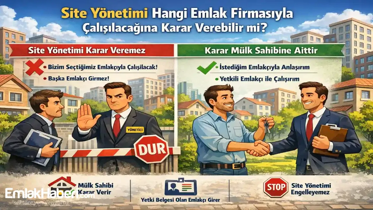 Son yıllarda özellikle büyük sitelerde ve rezidans projelerinde sıkça karşılaşılan bir uygulama, hem kat maliklerini hem de emlak sektörünü karşı karşıya getiriyor. Bazı site yönetimleri tarafından kat maliklerine yapılan duyurularda, “Sitemizin yetkili emlak firması … firmasıdır. Satış ve kiralama işlemlerinde yalnızca bu firma ile çalışılması gerekmektedir” ifadelerine yer veriliyor.