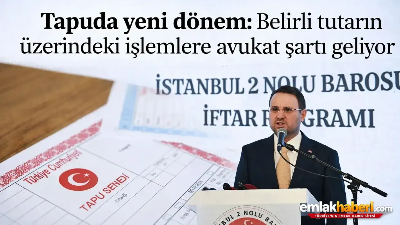 İstanbul 2 No'lu Barosu tarafından düzenlenen iftar programında konuşan Akın Gürlek, 12. Yargı Paketi kapsamında tapu işlemlerine ilişkin dikkat çeken bir düzenlemenin planlandığını açıkladı. Gürlek, belirli bir parasal sınırın üzerindeki tapu devir ve satış işlemlerinde avukatla temsil zorunluluğu getirilmesinin gündemde olduğunu söyledi.